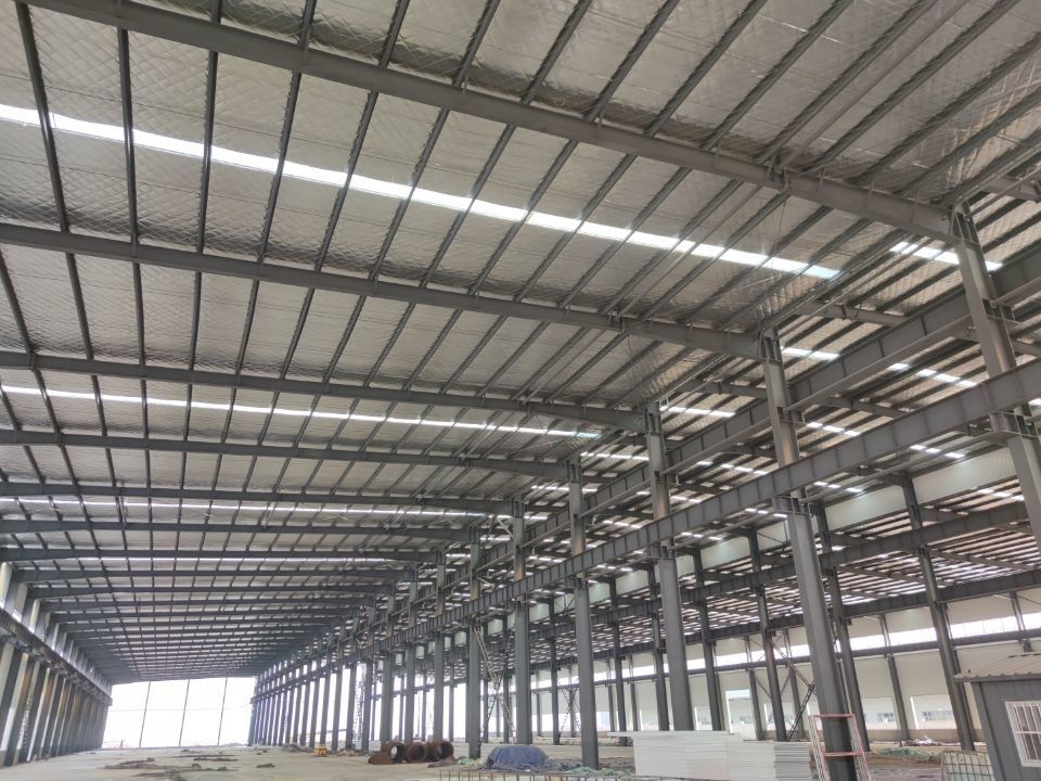 مبنى الهيكل الفولاذي نفسه له خصائص خفيفة الوزن.والتي هي أخف بكثير من الطوب والخرسانة الجدار السيراميكية السقف البلاط، والذي يمكن أن يقلل من الوزن الكلي للمستودع ولا يضر باستقرار الهيكل.